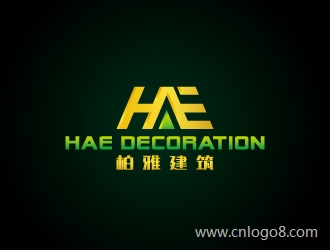 标志介绍:希望能有1个抽象的图案显示与建筑装修行业有关;希望这个图案能够结合进HAE这3个英文字母;这3个字母是公司3个主要合伙人的名字中的各1个字母;希望能够结合柏雅建筑中文文字,以及HAE Decoration英文文字;希望能够体现绿色,环保的一面;希望Logo总体简洁,明亮.