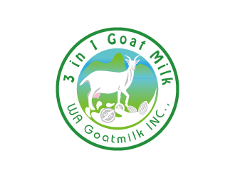 标志介绍:主营业务:世界独一无二的羊奶,配核桃和杏仁的。除了营养价值高(比牛奶),还有多种功效。 名字:3 in 1 GoatMilk或 3in1 GoatMilk或3 in 1 Goat Milk 我们是美国的公司,要求商标不能出现中文,可以用母羊产奶的图形,加上核桃和杏仁的图。 让人们一看就知道是羊奶里含了核桃和杏仁的成分,颜色也要好看。使人们看到图就很想吃这种羊奶。 另外公司名字准备用:WA Goatmilk INC.,说明:W代表是核桃Walnut的第一个字母,A代表Almond, n
